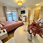 S výhledem na zahradu je Hotel Balticus Mrzezyno 13 minut chůze od Port of Mrzezyno ve městě Mrzeżyno. Ubytování poskytuje 10 pokojů vybavených přístrojem na přípravu kávy a čaje, TV s plochou obrazovkou se satelitními kanály, detektory kouře pro příjemný pobyt ve městě Mrzeżyno.